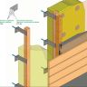 Основное принципиальное отличие фасада с отделочным материалом из древесины от фасада с металлической подсистемой это более простая конструкция подсистемы и оригинальная технология заполнения утеплителем пространства между несущей стеной здания и фасадом.