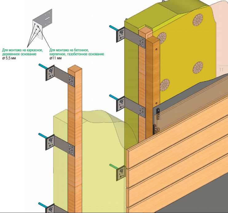 В качестве несущего вертикального профиля для систем вентилируемых фасадов с облицовочным материалом из дерева мы предлагает использовать антисептированный брусок из хвойных пород древесины. В отличие от металла древесина имеет нулевой коэффициент расширения вдоль волокон и не требует компенсации термического расширения профиля. Кроме этого, использование деревянных брусков в качестве несущего профиля очень выгодно сказывается на энергосберегающих свойствах фасада и позволяет существенно упростить конструкционные решения в отличие от традиционных металлических подсистем.