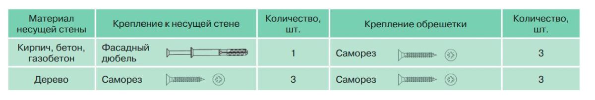Вместе с кронштейном ФК в зависимости от основания применяются различные крепежные элементы: клиновые или химические анкеры, распорные дюбели. Самым распространенным решение является использование распорных (фасадных) дюбелей, размер которых подбирается под тип основания.