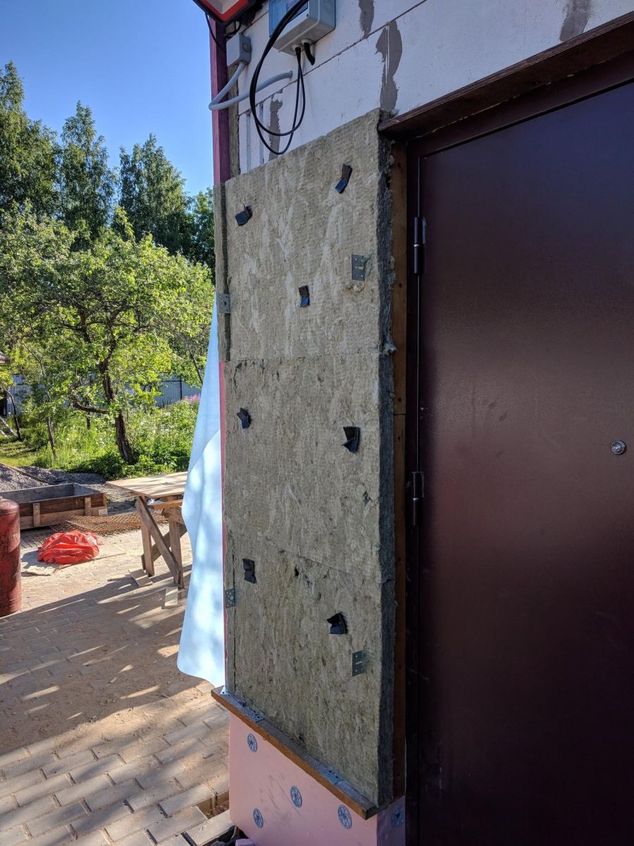 Пространство между несущей стеной здания и декоративным фасадом с целью улучшения энергосбережения здания заполняется утеплителем. Толщина утеплителя рассчитывается, исходя из требований к энергосбережению и обычно составляет от 100 до 200мм.