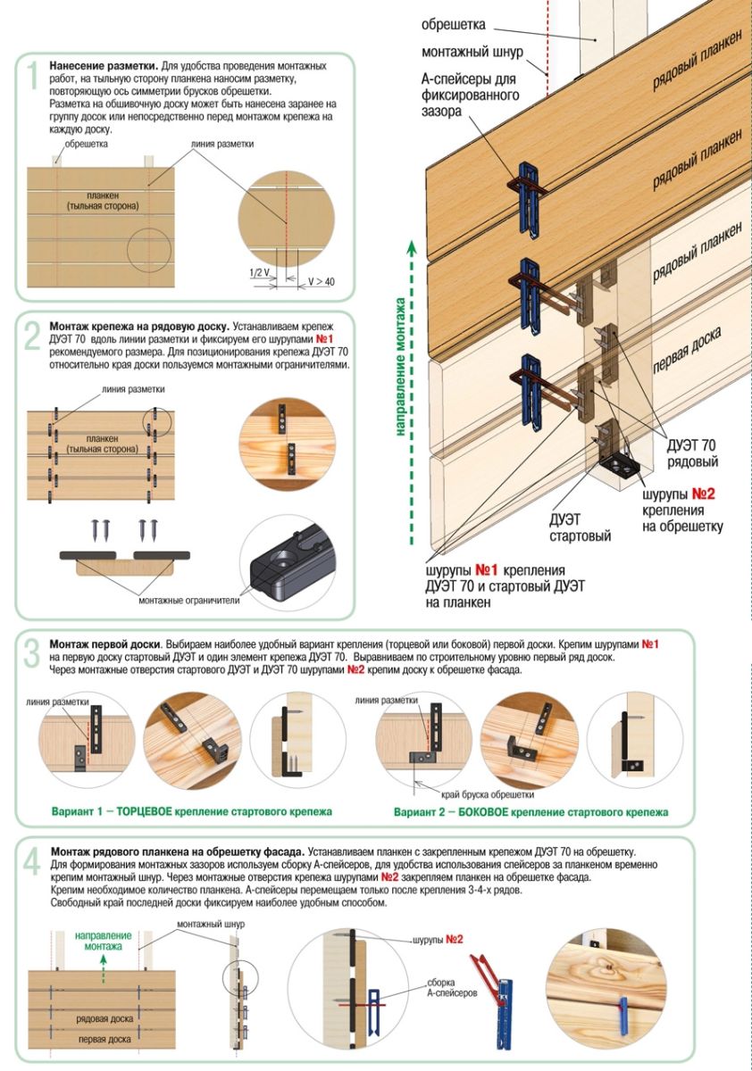 Данный крепеж рекомендуется для использования в высоконагруженных горизонтальных настилах, вентилируемых деревянных фасадах из прямого и скошенного планкена, имитации бруса и блокхауса.