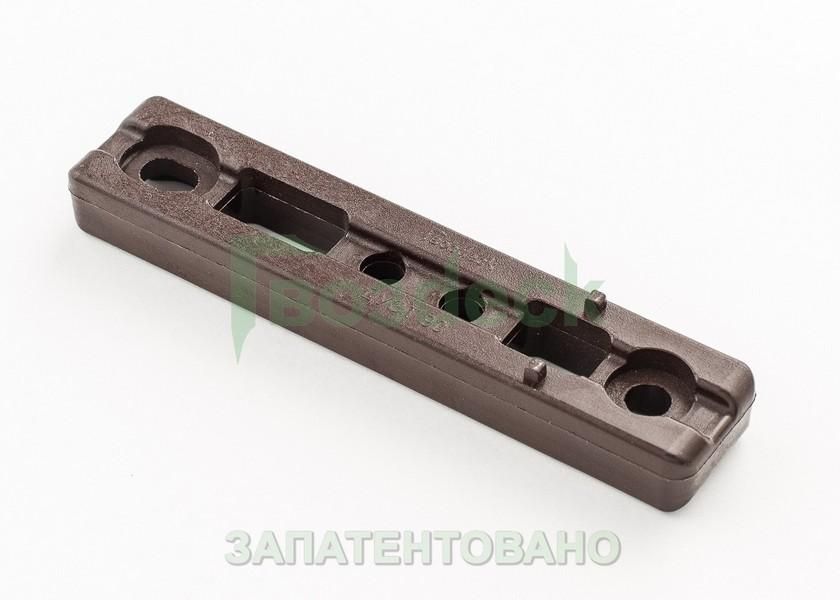 удобен для монтажа так как снабжен монтажных ограничителем, позиционирующим крепеж относительно края доски,