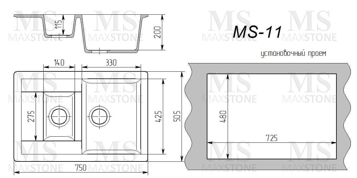 Читать все статьиМойка каменная MS-11 «Темно-серый» гл