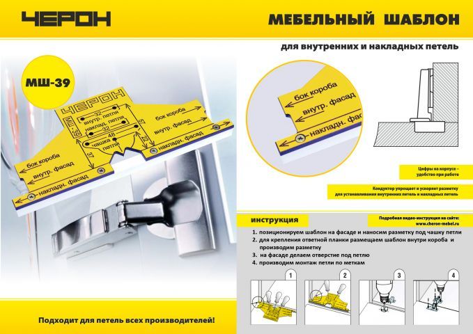 Читать все статьиМШ-39, мебельный шаблон для внутренних и накладных петель