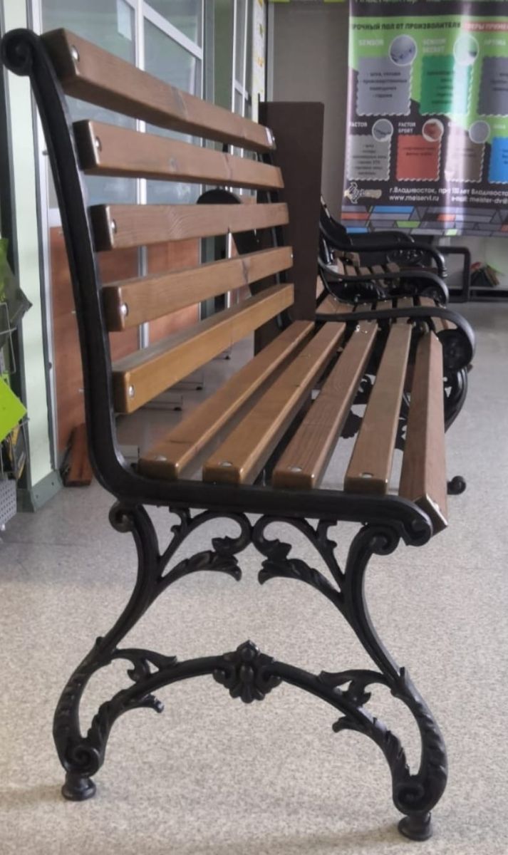 Уличные парковые скамьи с опорами из серого чугуна марки СЧ для общественных зон.