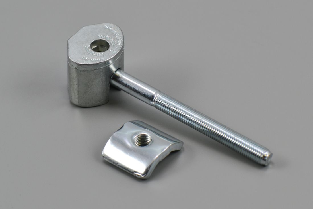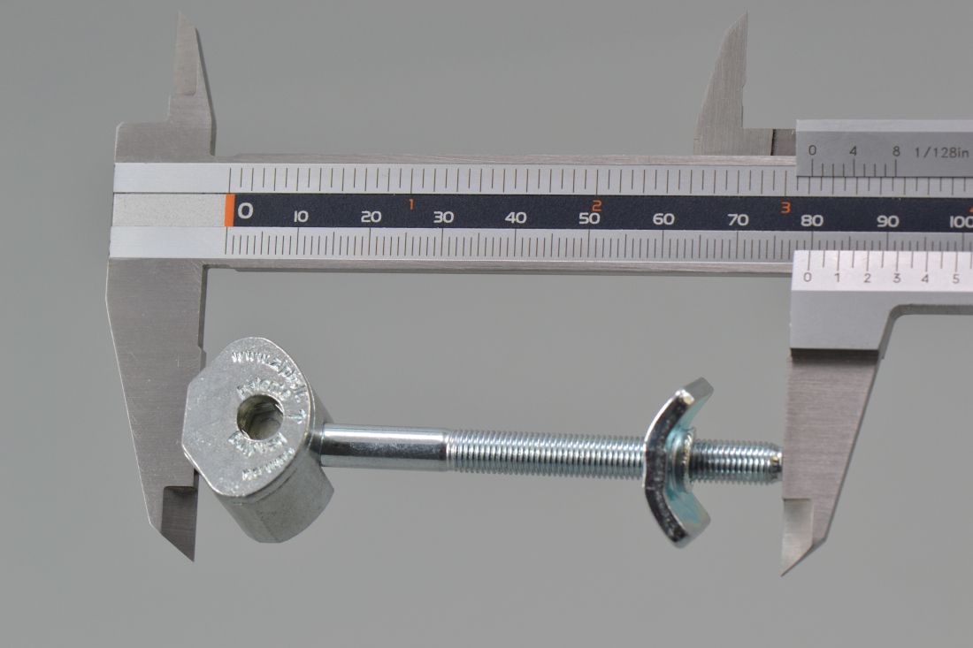 Мебельная стяжка-винт с одним редуктором для соединения столешниц, панелей и других изделий, изготовленных из дерева или ДСП, габаритная длина 80 мм, редуктор несъёмный.