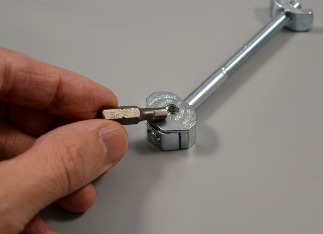 Zipbolt 10.820 предназначен для стыковки в одной плоскости деталей из дерева или ДСП. Он может быть использован для быстрого и надежного соединения встык деталей кухонных столешниц.