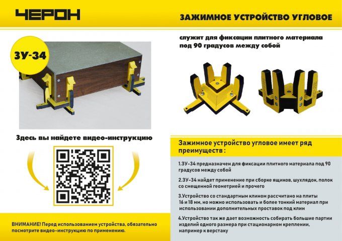 - ЗУ-34 предназначен для фиксации плитного материала под 90 градусов между собой.